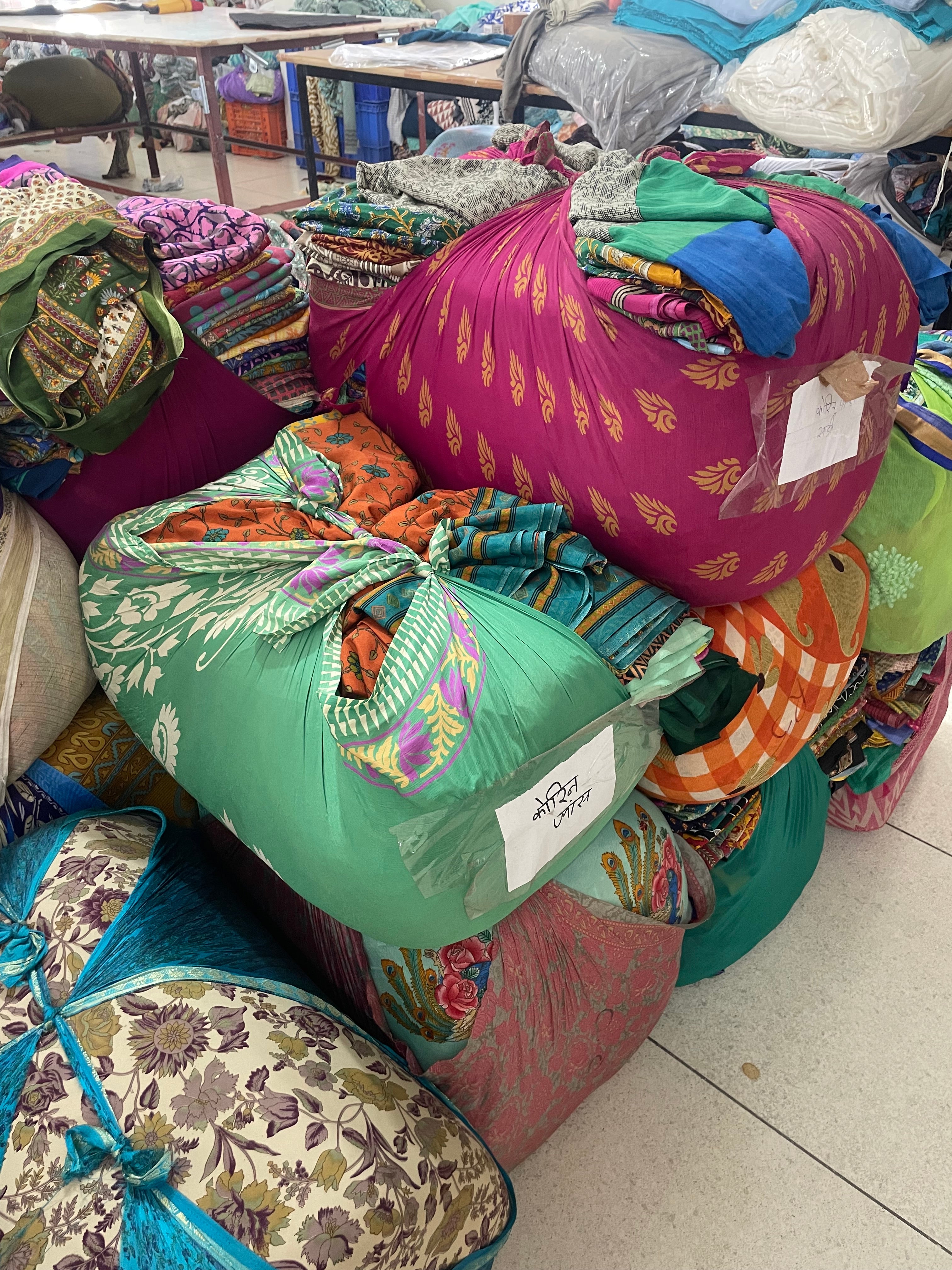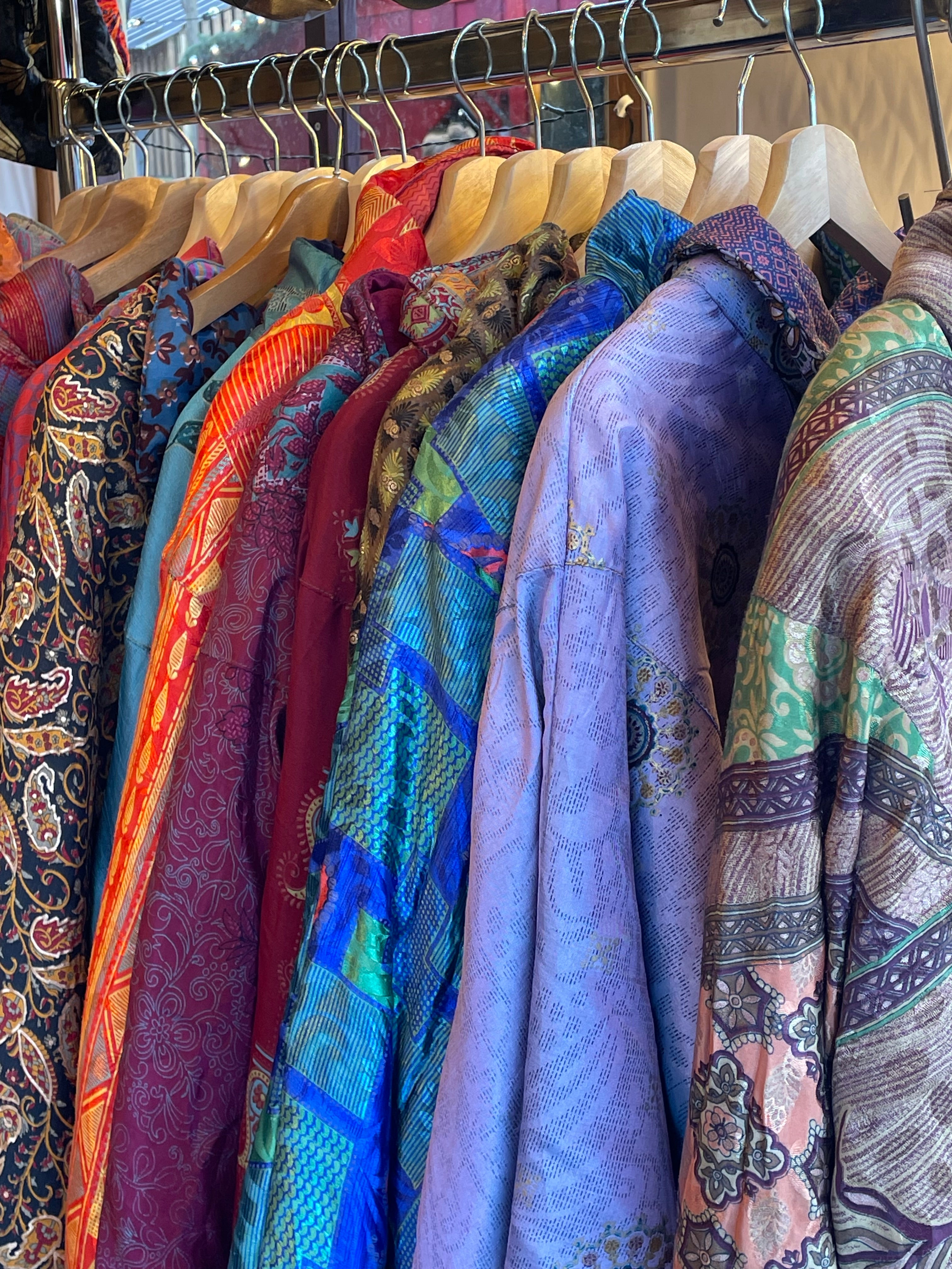 these fabrics; beyond their beauty, it’s an upcycling project, giving saris a new life in the garments they become. It feels like a beautiful rebirth.